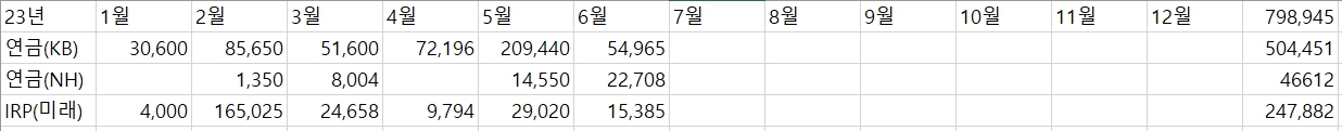 연금저축계좌 23년 누적 배당 올해 연금계좌에서 총 누적 배당금은 798,945원을 기록하고 있습니다.
